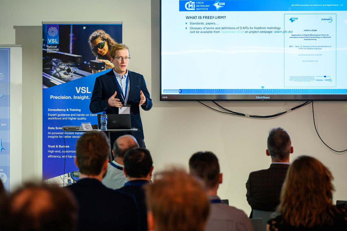 VSL hosted a workshop on February 5, 13:30-17:30, featuring talks from experts on dimensional metrology using 3D coordinate measuring machines (CMMs) with focus on advanced tactile measurements on freeform geometries and the application of digital twins (e.g. virtual CMMs and D-MTs). In addition, early outcomes of the ADAM project were presented on the development and usage of virtual and physical freeform measurement standards. During the workshop there were opportunities for meeting the experts, networking, demonstrations and lab tours.